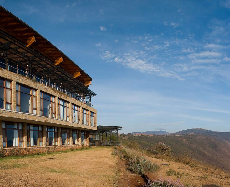 The Lodge is elegantly built mainly from natural stone and local wood which blend harmoniously with the natural surroundings, and is equipped with panoramic windows that encompass superb views. The best view of the crater will be seen from here.